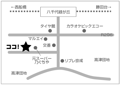 〒276-0046 千葉県八千代市大和田新田60-4 TEL:047-450-9744 (東葉高速鉄道、八千代緑ヶ丘駅から徒歩13分) ●診療時間 月,火,水,木,金曜日→8:30〜12:00、15:00〜20:00 土曜日 8:30〜13:00 ●休診 日曜・祝日